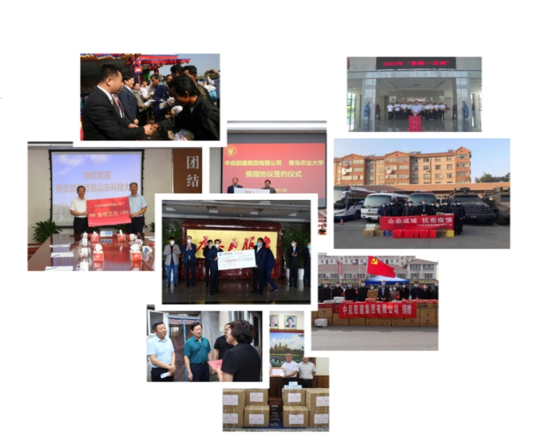 作为胶州市慈善总会副会长单位,多年来,集团在发展壮大的同时,始终不忘回报社会,以仁爱之心积极投身社会公益慈善事业。关心教育事业,爱心捐资助学——公司重视教育事业,特别是对贫困学生提供资助,每年向特困大学生、部分中小学捐助资金约5万元。2018年以来,向青岛理工大学、山东科技大学、青岛农业大学等驻青高校捐赠款项834万元,为青岛的高等教育事业贡献力量。帮扶贫困农村,助力乡村建设——公司积极响应振兴新农村建设的号召,充分发挥自身优势,主动参与“4 1”团队帮扶机制,与里岔镇韩家庄村结对,帮助其成立劳务公司,使村民脱贫致富;张应镇小草泊村自来水年久失修,村民供水困难,公司捐助资金3万元,帮助其修复管道恢复供水;胶州市大沽河两岸治理改造需搬迁公墓,公司捐助资金6万元帮助村民搬迁,使大沽河治理改造工程顺利进行。组织捐款捐物,支援受灾地区——汶川地震、雅安地震,组织职工捐款捐物60余万元,并选拔精良的施工队伍进驻灾区,帮助灾区重建。新冠肺炎疫情发生以来,组织职工捐款捐物198余万元,组织职工无偿献血支持武汉血液供应,在疫情隔离点紧张情况下,旗下中启康年酒店为防疫工作提供关键隔离场所,为防疫提供强有力支援。情系困难职工,彰显人文关怀——公司关爱困难职工,将开展困难职工生病慰问、大病救助、金秋助学等活动正常化、制度化,努力为困难职工办实事、做好事、解难事,让困难职工切实感受到企业的关心和温暖。企业每年走访慰问困难职工家庭资金近30万元。