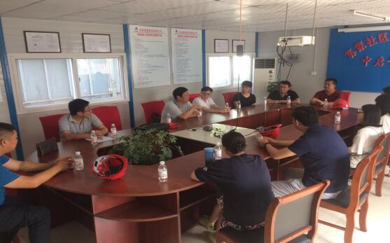 今年新分配的大学生到苏家社区工地参观学习并参加座谈,公司党支部书记于英年同志、集团人力资源部经理刘兴红同志、公司副经理孙晓波同志、工地项目经理、工地党支部成员等出席会议。