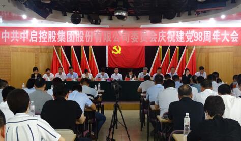 6月29日,在党的98周年华诞即将来临之际,中启控股集团隆重召开纪念建党98周年大会。胶州市委组织员姜娟、集团董事局主席张启荣、党委书记张增昌、党委副书记孙淑云及党委委员郭道盛、张桂香、徐奎学、姜焕胜、王法精、马振声、张秀玲、孙财林、管吉国等出席会议,会议由党委副书记孙淑云主持。
