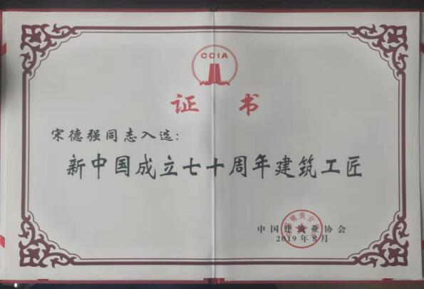 集团职工宋德强同志获评“新中国成立70周年·建筑工匠”称号