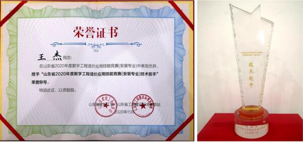 11月14日, 2020年度全省数字工程造价应用技能竞赛(安装专业)决赛在济南举行。集团职工王杰取得了山东省第三、青岛市第一的优异成绩,荣获“山东省2020年度数字工程造价应用技能竞赛(安装专业)技术能手”荣誉称号。