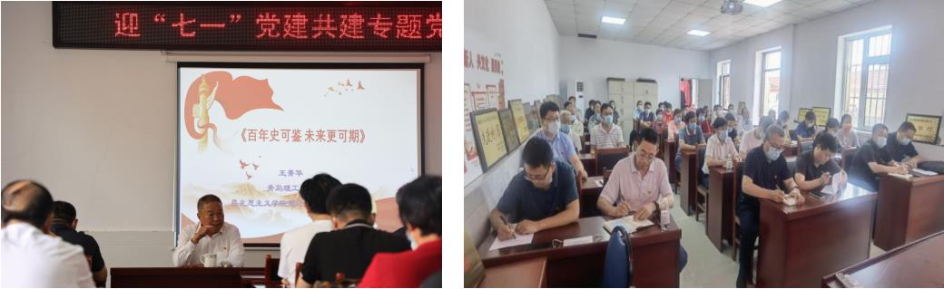 签约仪式后,王菁华书记为参加此次活动的全体党员上了一堂题为《百年史可鉴 未来更可期》的党课。