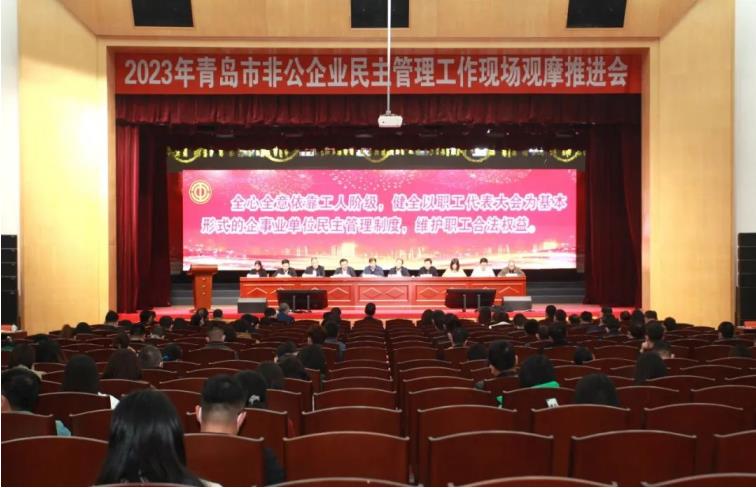 3月7日上午,青岛市非公企业民主管理工作现场观摩推进会在即墨区即发集团有限公司召开。中华全国总工会基层工作部副部长黄龙、山东省总工会基层工作部部长黄吉军出席会议,青岛市委组织部、市人力资源社会保障局、市工商联,各区市总工会相关负责人、基层部负责人及部分非公企业代表共140余人参加会议。集团工会主席刘博参加会议并作典型发言。