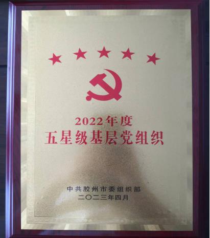 近日,中共胶州市委组织部印发了《关于做好2022年度全市基层党组织评星定级工作的通知》,经过实地考察及灯塔—党建在线e支部系统完善情况等综合评定,中启胶建集团第一党支部获评为“2022年度胶州市五星级党组织”称号。