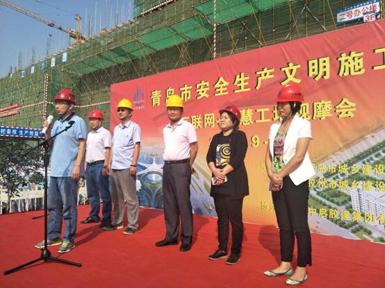 9月28日上午,青岛市城乡建委建筑工程管理局主办的安全生产智慧绿色施工现场观摩会在我公司施工的胶东国际机场综合办公楼及生活用房项目施工现场隆重举行。青岛市建管局安监站副站长夏建辉、胶州市建设局副局长王世梅、安监站长秦红斌、中启控股集团监事会主席张桂香、中启胶建副总经理刘尧等领导以及各区市施工、监理单位安全分管领导、机构负责人、项目经理、项目总监180余人参加了本次观摩大会。