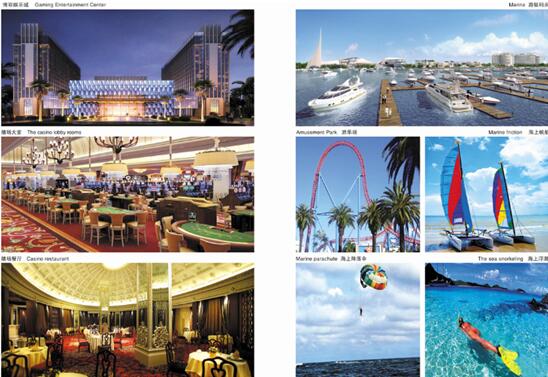 项目计划投资3.6亿美元,总建筑面积58万平方米,包括精品酒店、度假别墅、游艇码头、游乐场、博彩娱乐城、会议中心、餐饮购物中心等,是集休闲居住、旅游度假、国际会议、商务接待等一站式城市中心。