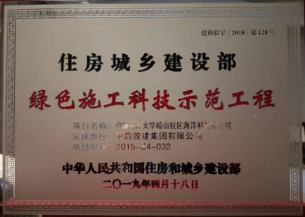 日前,中启胶建集团建筑七公司施工的中国海洋大学崂山校区海洋科技中心楼项目获得住房和城乡建设部绿色施工科技示范工程授牌。