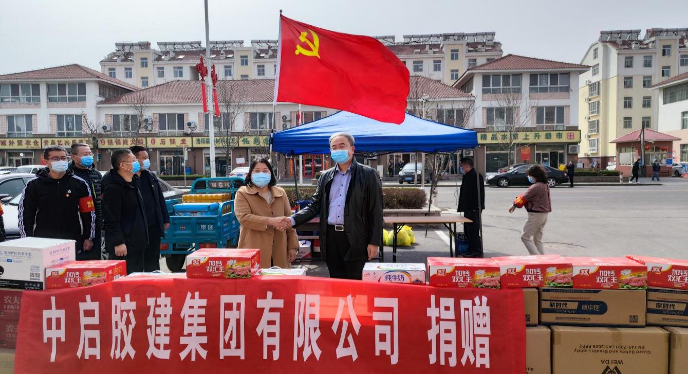 3月16日上午,中启控股集团分别向胶州市胶莱街道办事处、市住房和城乡建设局防疫监测点捐赠一批防疫和生活物资,为防疫工作人员送去温暖和祝福,以实际行动助力我市疫情防控。中启控股集团常务副总裁、中启胶建集团总经理郭道盛,中启控股集团党委副书记、副总裁张桂香,中启胶建集团副总经理刘尧参加捐赠活动。