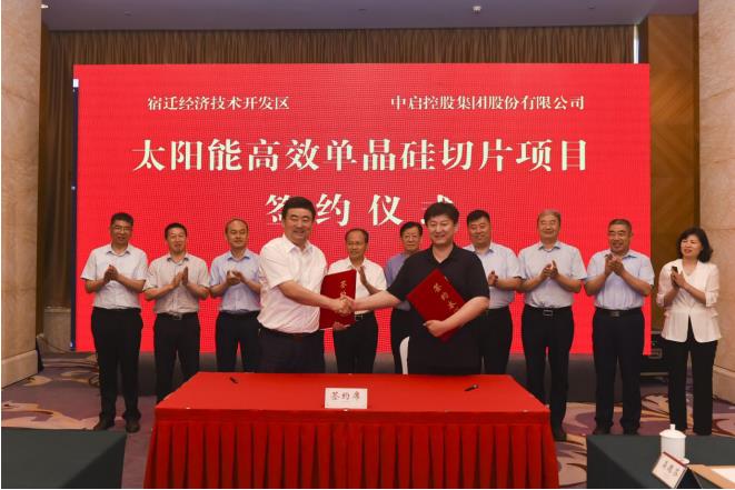 6月6日上午,中启控股集团与江苏省宿迁市经济技术开发区管委会就年产25gw太阳能高效单晶硅切片项目举行签约仪式。集团董事局主席张启荣,董事局副主席、总裁张增昌,常务副总裁郭道盛,副总裁张桂香,副总裁马振声,宿迁市副市长、经开区党工委书记张辉,经开区党工委副书记、管委会副主任王峰等领导参加项目投资座谈交流并出席签约仪式。