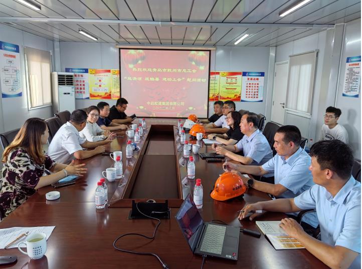 接着,慰问组在项目部会议室进行座谈。孙勇书记听取了项目概况及进展情况,他代表市总工会对在高温季节坚持工作的广大一线施工人员表示慰问和感谢,感谢他们为建设项目所做出的贡献,同时要求企业要时刻关心、关注一线施工人员的职业健康安全,做好防暑降温工作,严格落实各项安全生产措施,确保安全生产,为他们更好地为胶州上合示范区的建设贡献力量提供有力保障。