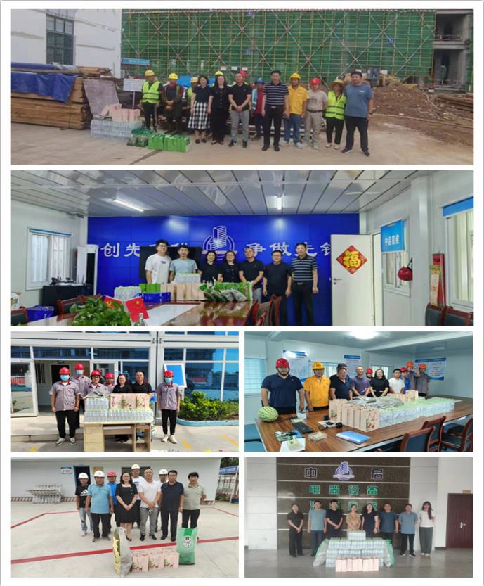 骄阳似火,酷暑难耐,为切实做好夏季防暑降温工作,保障职工的生产安全、身心健康和各项目平稳有序进展,自7月下旬起,由集团党委副书记、董事副总裁张桂香、安全生产管理部经理刘尧、工会主席刘博及安全生产管理部相关人员组成慰问组,顶着炎炎烈日到集团各基层单位和重点工程项目开展“夏送清凉”慰问活动,为始终奋战在一线的“战士”们,精心准备了实用的绿茶、绿豆、矿泉水等“清凉”物品,在炎热的夏季送去阵阵“清风”,拉开了今年集团“夏送清凉”活动的序幕。