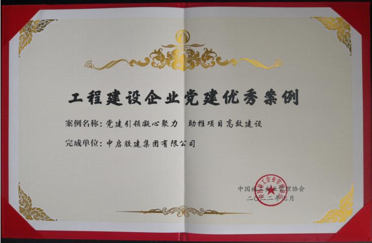 近日,中启胶建集团有限公司党建工作案例《党建引领凝心聚力,助推项目高效建设》荣获中国施工企业管理协会“工程建设企业党建工作优秀案例”奖。