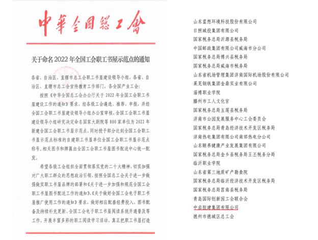 近日,全国工会职工书屋建设领导小组办公室、中华全国总工会宣传教育部印发《关于命名2022年全国工会职工书屋示范点的通知》,集团荣获“2022年全国工会职工书屋示范点”称号,并为集团职工书屋示范点配送了1万元的图书。