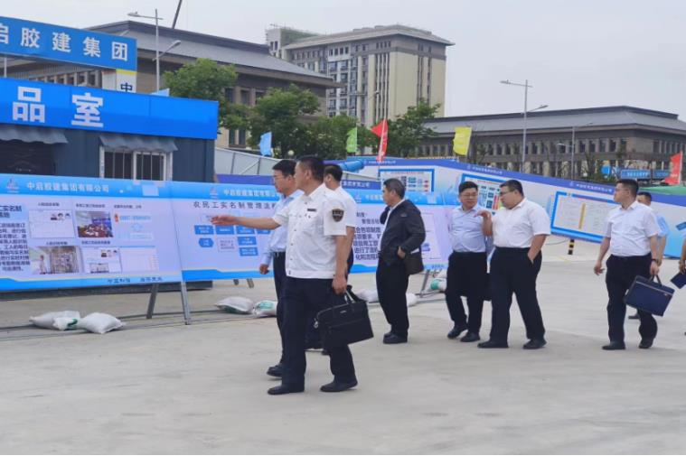 调研组一行首先到上合技术创新综合体项目现场详细调查了解农名工工资支付情况,随后到集团公司参观了中启文化展厅及集团荣誉室,并在集团会议室进行座谈。集团党委书记、总裁张增昌介绍了集团的发展历程、产业布局和取得的成绩。辛广军副局长就各项制度建设和农民工工资保障等方面的情况与相关领导和负责人进行了交流。调研中,辛广军副局长对公司在保障农民工工资支付方面利用企业级管理平台实行的精细化管控给予了高度评价,对公司在保障农民工工资支付落实方面的扎实工作进行了充分肯定,并针对下一步的保障农民工工资支付工作提出了更高要求。