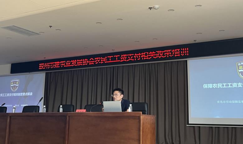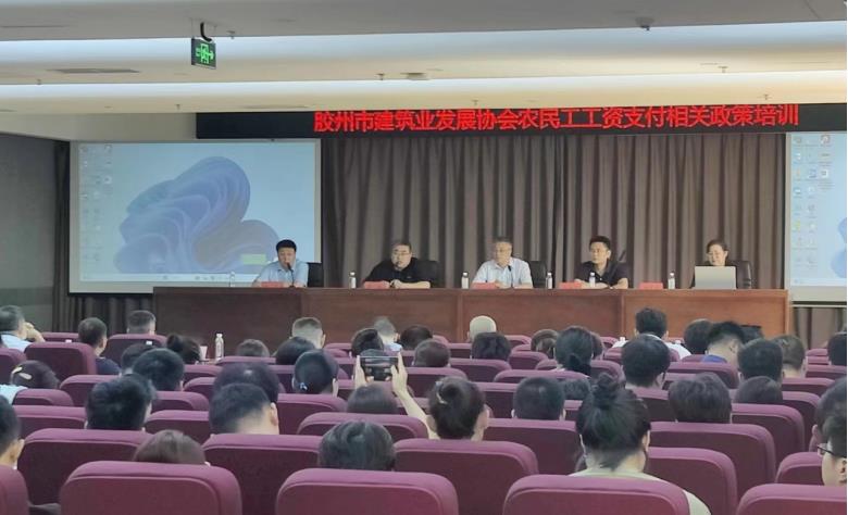 为进一步加强建筑工程项目管理,规范现场劳务用工管理,深入了解《保障农民工工资支付条例》等法律法规,引导企业加强劳动用工管理,规范工资支付行为,确保工程建设安全有序推进。2023年7月6日上午,胶州市建筑业发展协会在澄韵中心顺利举行保障农民工工资支付方面的相关政策培训。胶州市住建局副局长宋世谦和胶州市人社局劳动关系协调中心主任李臻出席了本次培训并讲话,参加培训的有会员单位负责人及劳务工作人员共200多人。培训由协会秘书长刘尧主持。
