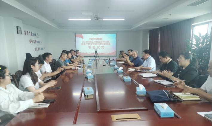 7月31日上午,中启胶建集团在中启大厦20楼会议室举行2023年青岛市安全讲师大赛暨职业技能大赛获奖选手表彰会。中启胶建集团党委书记、总经理郭道盛,中启胶建集团副总经理、安全生产管理部经理刘尧、安全生产管理部全体人员及公司各单位安全生产管理人员参加了本次表彰会。会议由中启胶建集团副总经理、安全生产管理部经理刘尧主持,并宣读了表彰文件。