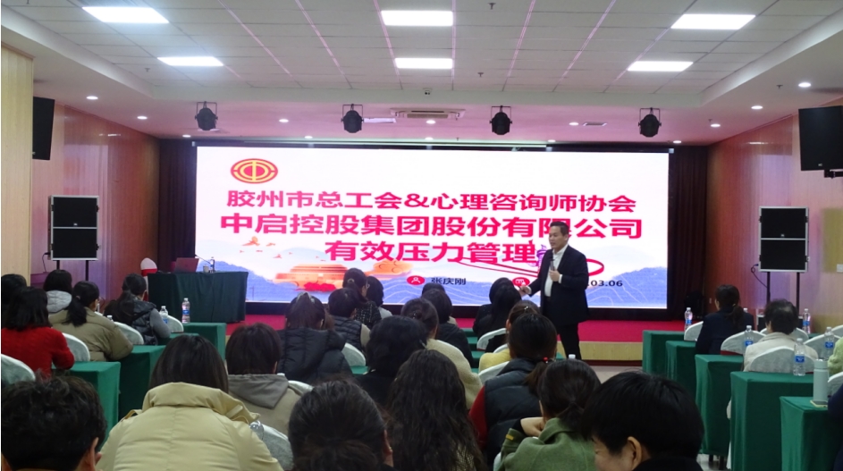 在“三八”国际妇女节来临之际,为使集团女职工度过一个健康、和谐、快乐而有意义的节日,3月6日下午,集团在中启大厦二楼多功能厅举办“三八”妇女节关爱女职工心理健康教育讲座活动。本次讲座特邀国家二级心理咨询师、高级家庭教育指导师、nlp国际专业执行师、青岛市总工会心理健康讲师团讲师、胶州市总工会心理服务专家组组长张庆刚老师现场授课。集团女职工100余人参加了讲座。
