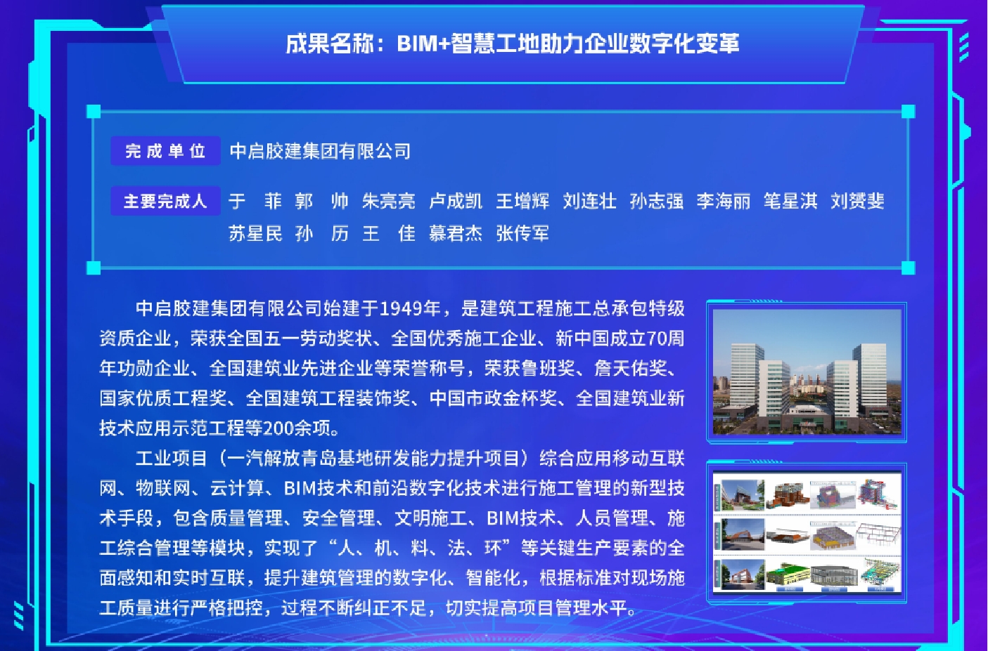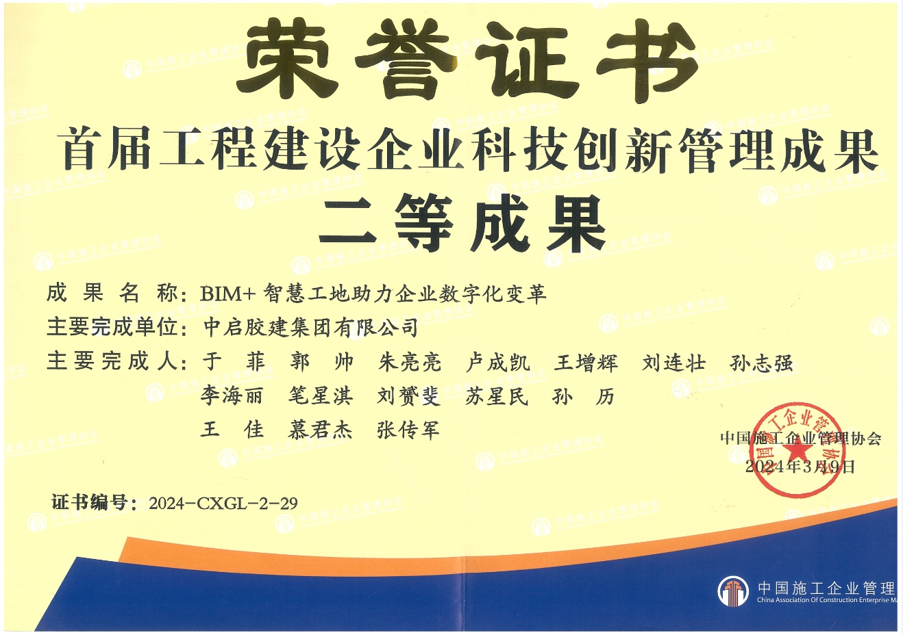 3月18日至20日,由中国施工企业管理协会主办的“2024年工程建设行业科技工作会议”在广州隆重召开,会上公布了首届工程建设企业科技创新管理成果。中启胶建集团有限公司建设项目管理分公司的成果《bim 智慧工地助力企业数字化变革》荣获二等奖,并在会上做了推介展示。