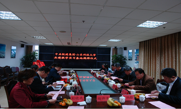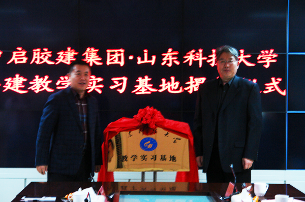 12月20日,中启胶建集团与山东科技大学共建教学实习基地揭牌仪式在公司三楼会议室举行。中启胶建集团总经理徐奎学、总工程师黑增武、总会计师彭武焕、副总经理贾桂亮,山东科技大学党委副书记李道刚,经管学院党委书记杨佑灵、院长侯贵生以及mba教育中心副主任张学睦和部分山东科技大学优秀校友参加了揭牌仪式。