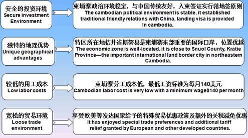 桔井省经济特区位于柬埔寨王国东北部最大的国际口岸城市—桔井省斯努县,离柬越国际陆路口岸关口1.5公里,距离越南胡志明深水港150公里,地理位置优越,交通便利。同时入驻特区企业享受多种优惠待遇及税收政策。目前已有多家企业抢先入驻,优先布局。