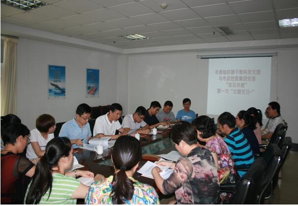 6月16日下午,为庆祝建党96周年,推动市委机关支部与村企支部“双百共建”措施落实,夯实“两学一做”学习教育常态化制度化组织基础,根据市委统一安排部署,市委组织部干教科党支部与中启控股集团党委结对共建,开展了第一次“主题党日+”学习教育活动,市委组织部干教科党支部书记邱喜峰、集团党委副书记孙淑云等18名党员干部群众参加学习教育活动。
