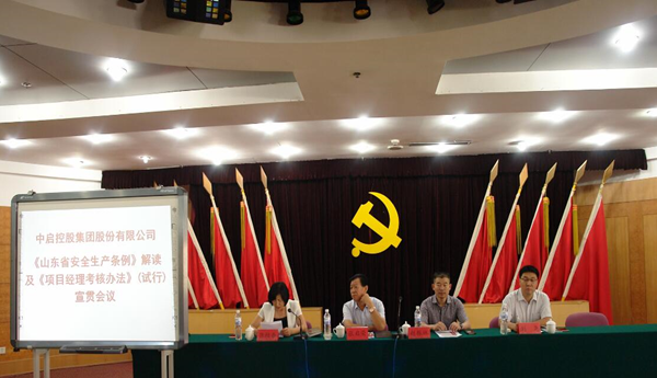 为全面落实主体责任,强化各级安全思想意识,确保安全生产,提高项目经理主观能动性, 2017年6月17日上午生产计划部组织集团各单位负责人、分管经理、安全管理人员、 项目经理和项目安全主管学习了《山东省安全生产条例》和《项目经理考核办法》,会议由中启控股集团监事会主席张桂香主持。