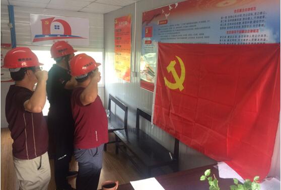 工地党支部积极开展“主题党日+”活动,组织党员在党建活动室面向党旗庄严宣誓,重温入党誓词与学习部分党章党规,再次让每名党员的思想和心灵接受了严格的党性洗礼,坚定了党员干部不忘初心,牢记宗旨的决心和信心,提高了党员干部履行党员义务、发挥先锋模范作用的责任意识,进一步增强了党员干部的责任感、光荣感和使命感。